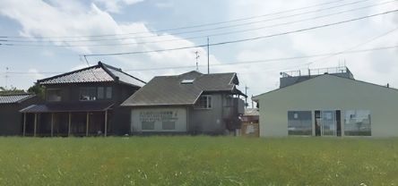 東側から見た現施設(左から母屋、保育棟、カフェ)